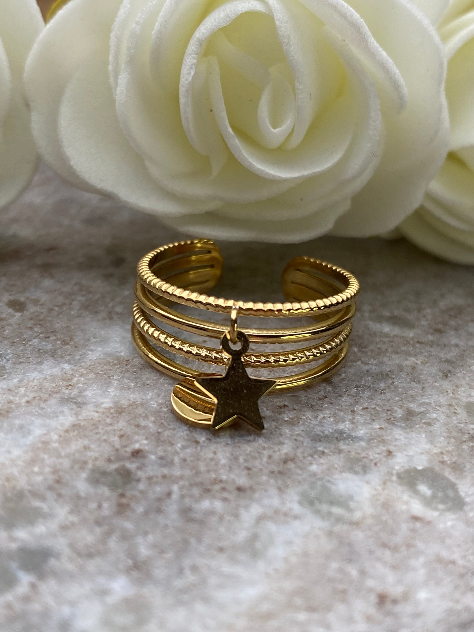 Fabriquée en acier inoxydable, cette bague ajustable ornée d'une étoile ajoutera une touche de sophistication et d'exclusivité à votre look.