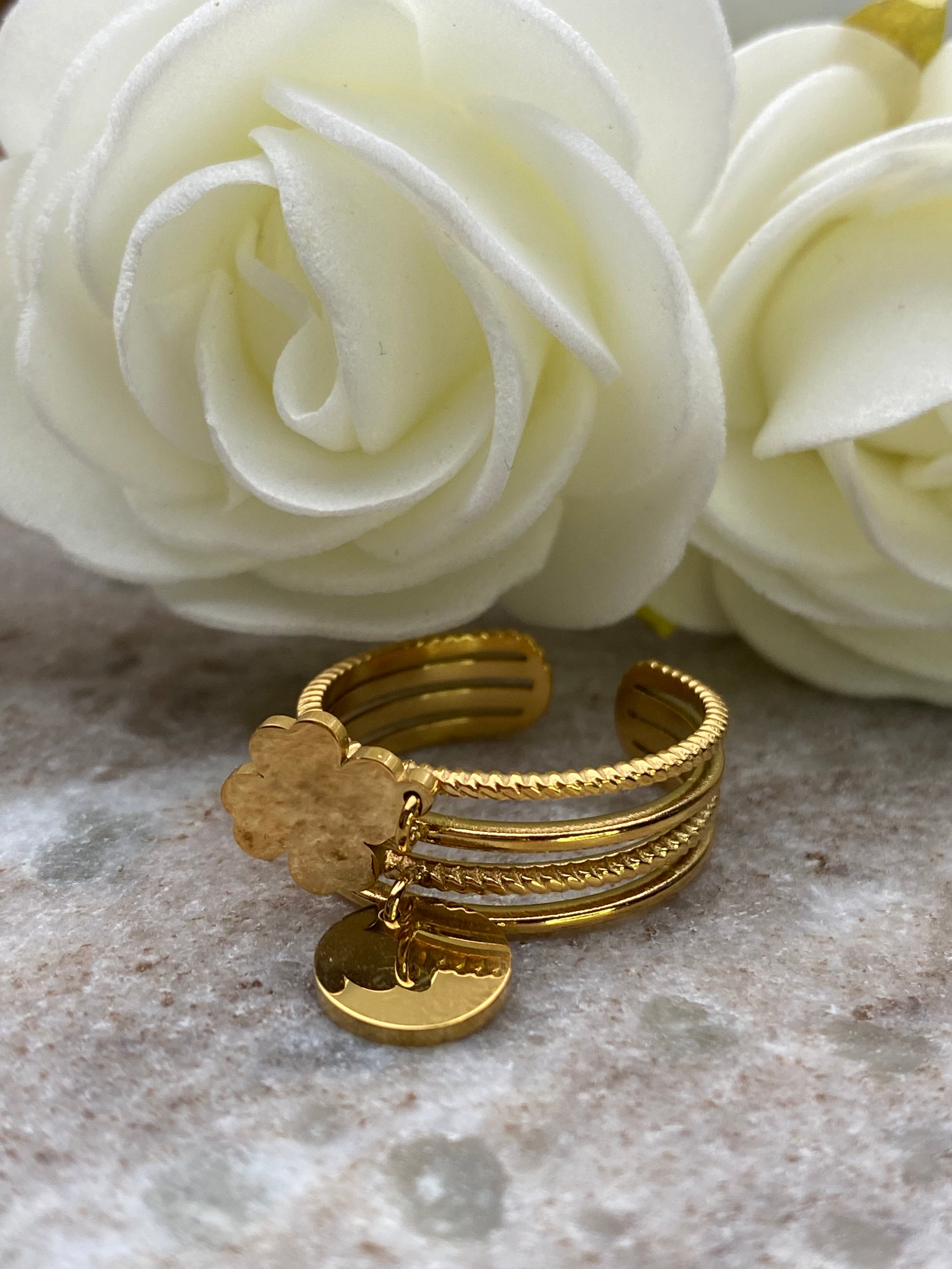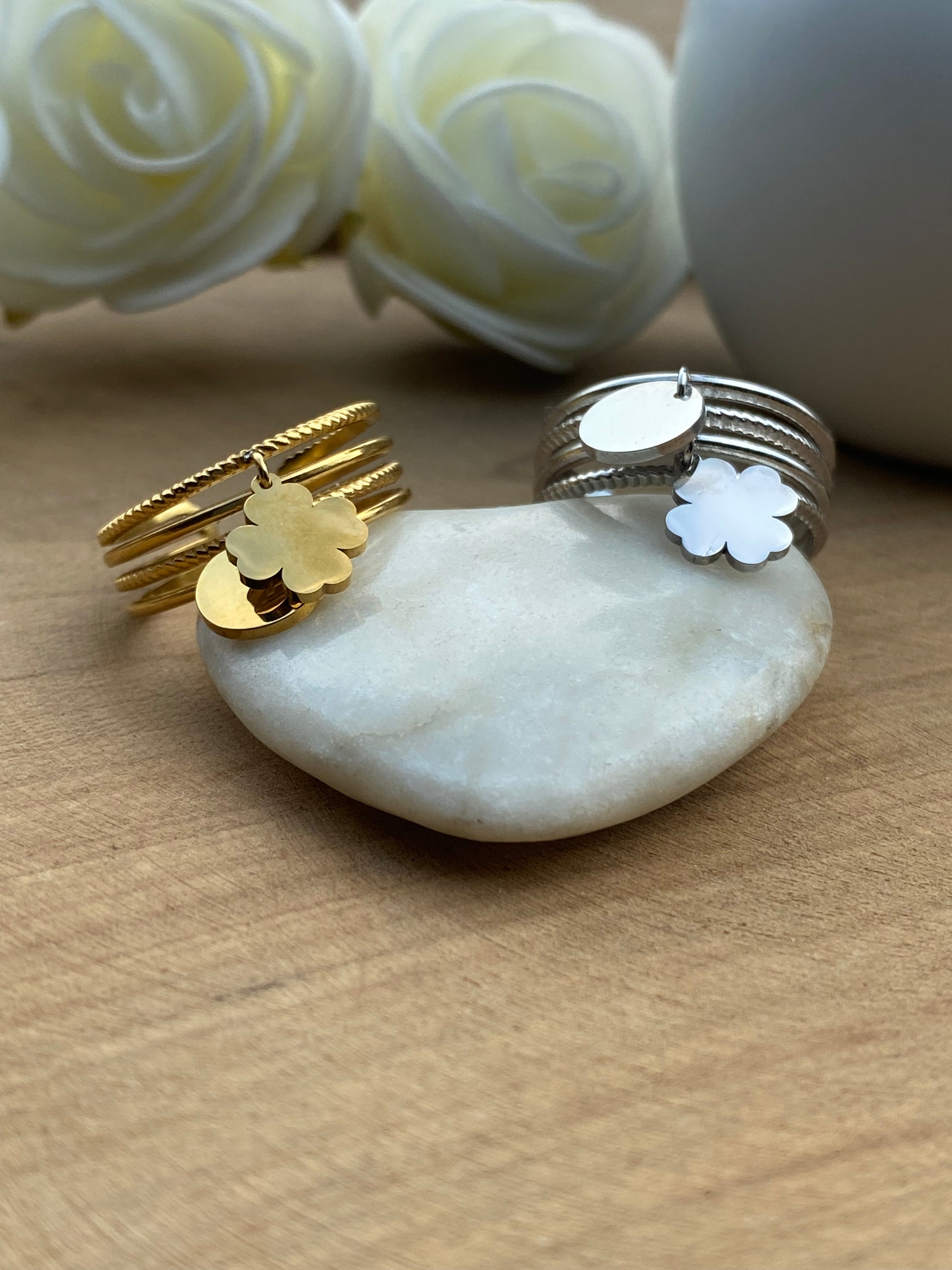 La bague Lina en acier inoxydable offre un design ajustable pour un confort optimal tout au long de la journée.