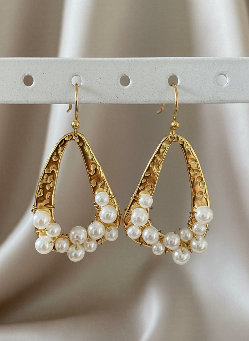 Boucles d’oreilles ovale avec perles blanches en acier inoxydable.