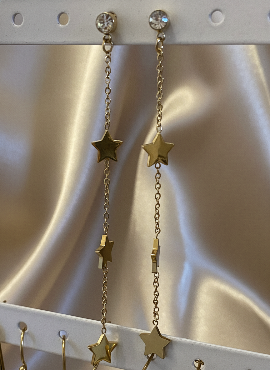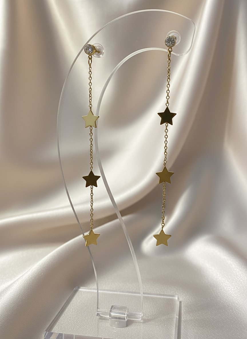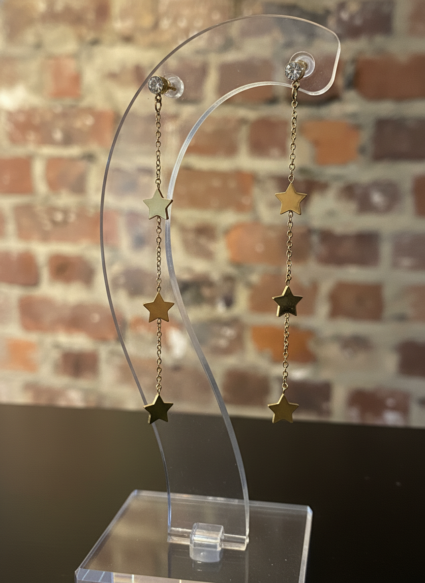 Boucles d'oreilles en acier inoxydable étoiles sur pendentif.