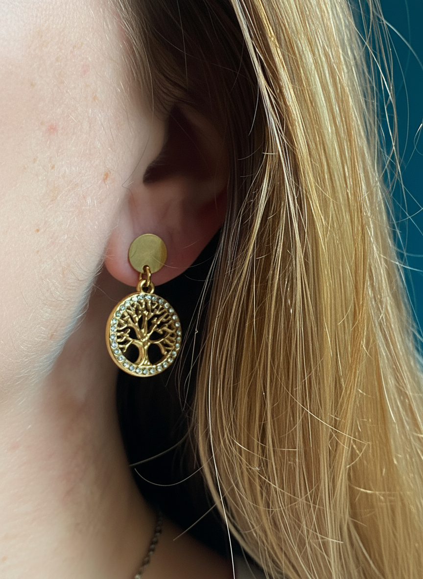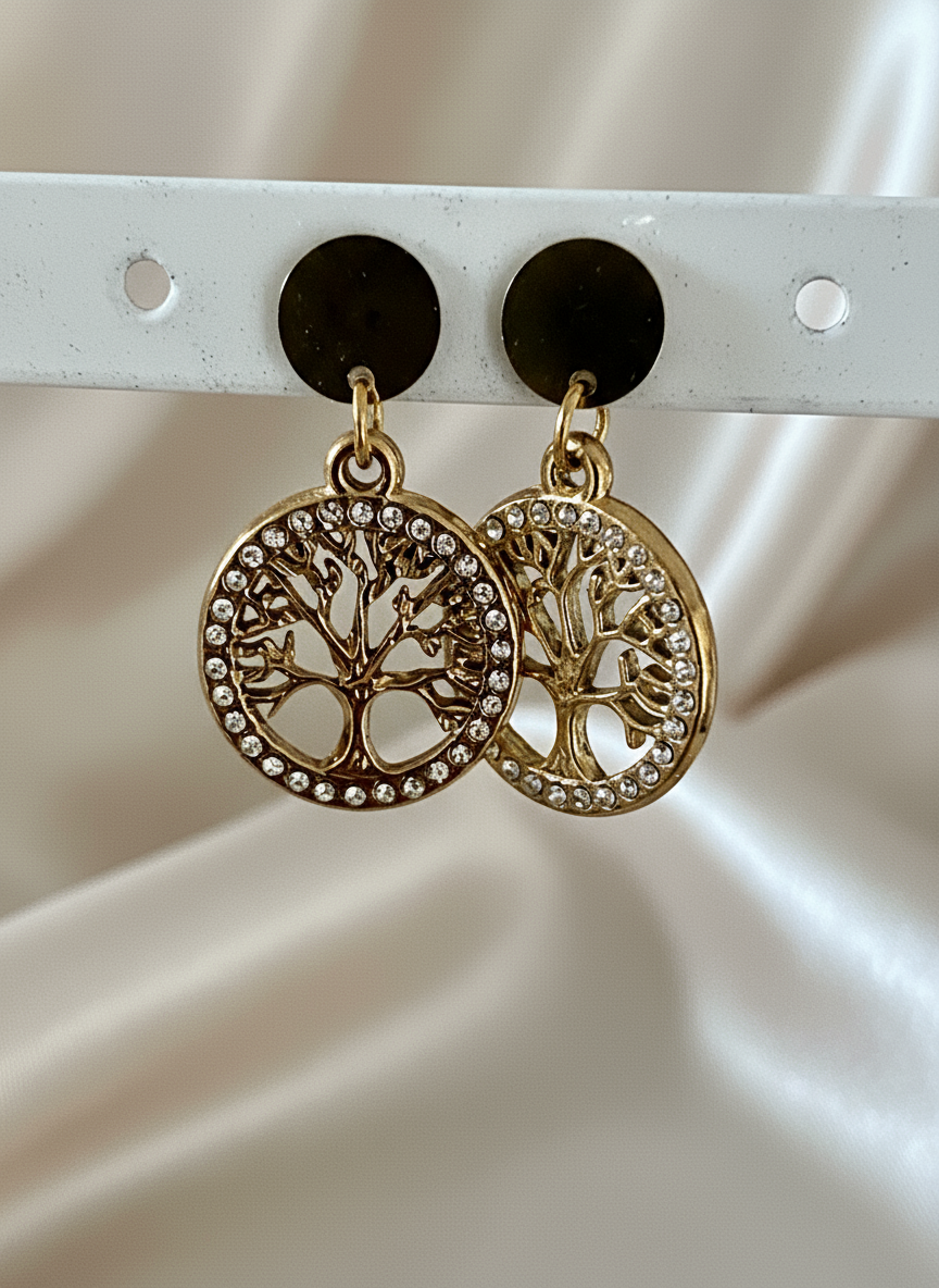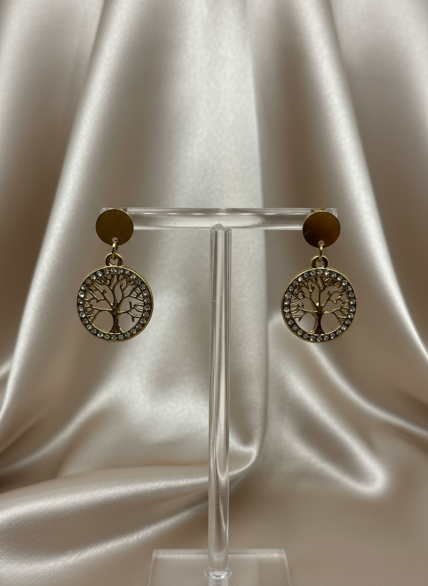 Boucles d'oreilles en acier inoxydable doré et strass arbre de vie