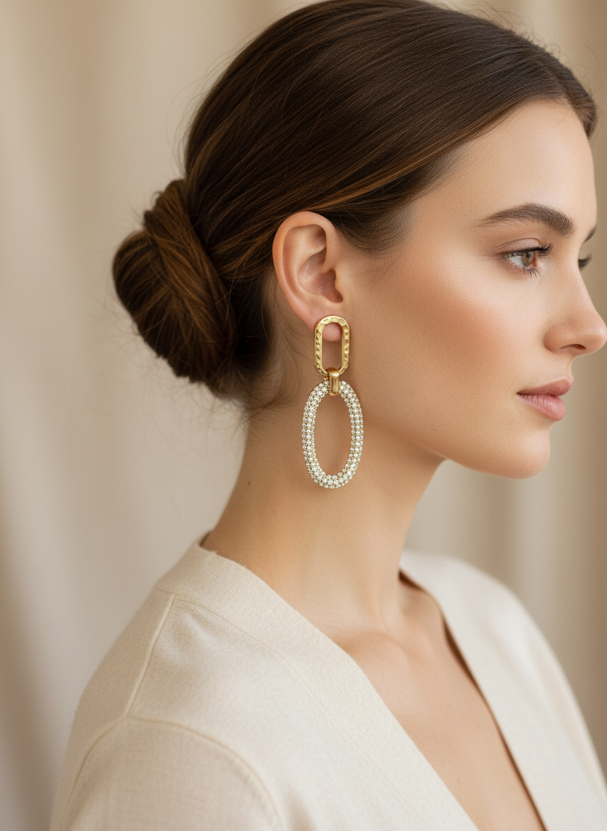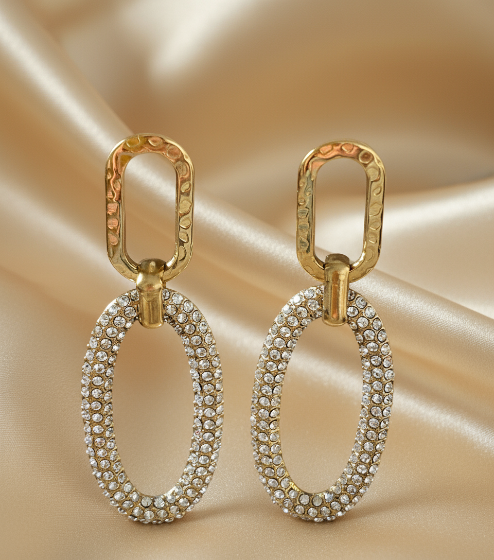 Boucles d'oreilles en acier inoxydable avec strass.