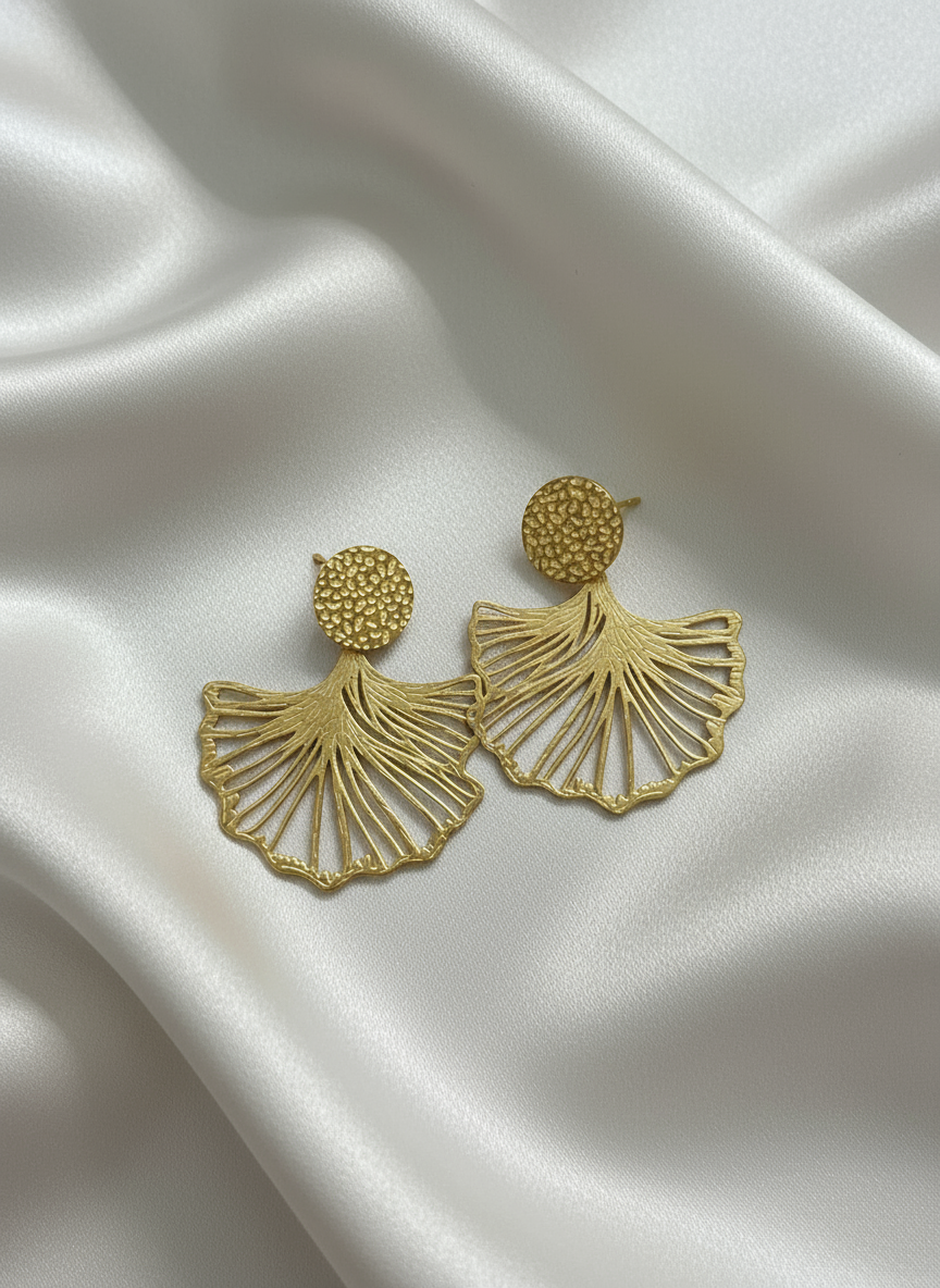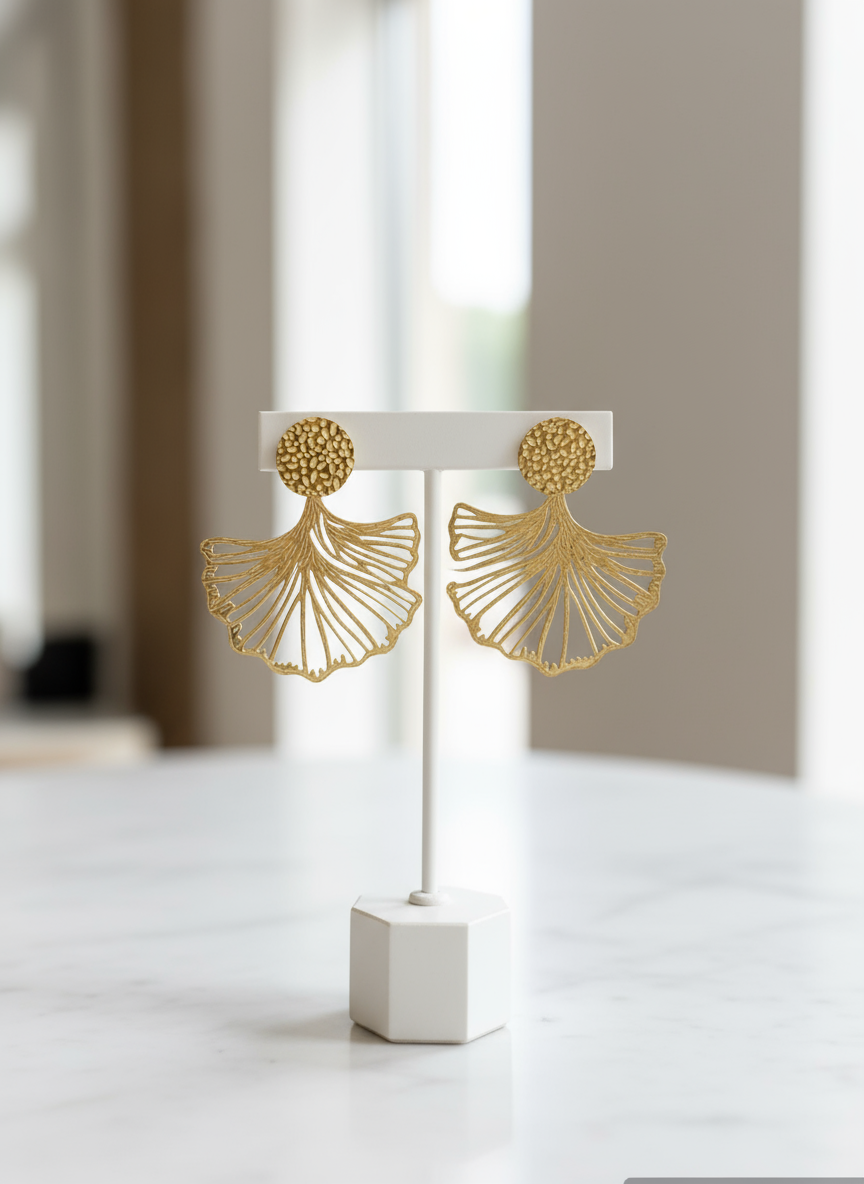 Boucles d'oreilles à fermoir en perçeuse avec pendentif feuille Ginko marte.