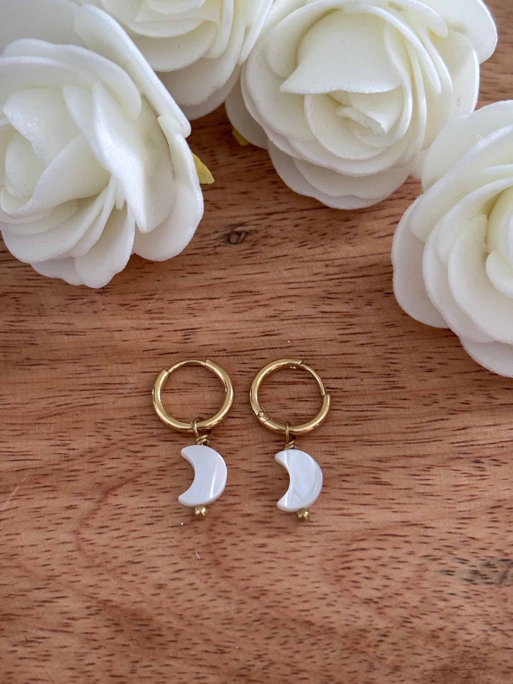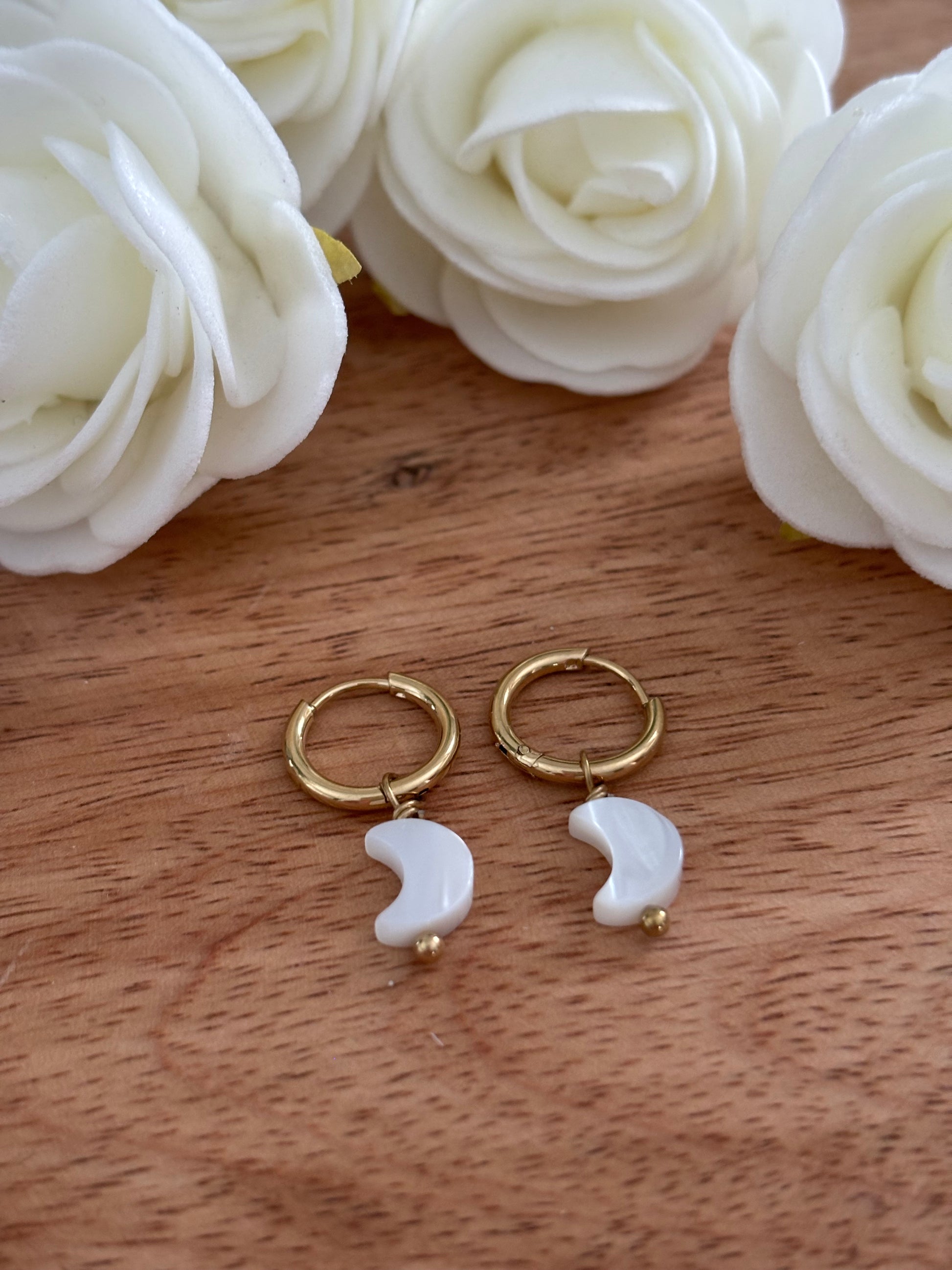 🌙 Pendentif en forme de lune nacrée✨ Acier inoxydable – Hypoallergénique, sans risque d’oxydation💫 Taille : env. 2,5 cm🎁 Parfaites à offrir… ou à s’offrir !