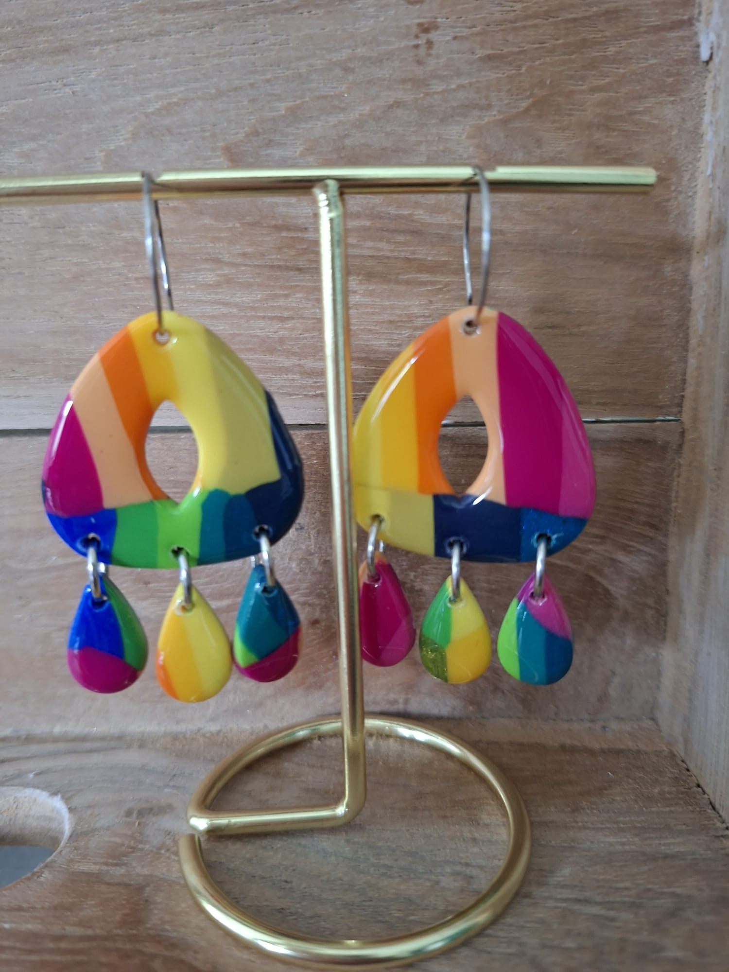 La boucle est une création artisanale alliant acier inoxydable, résine et pâte polymère.
