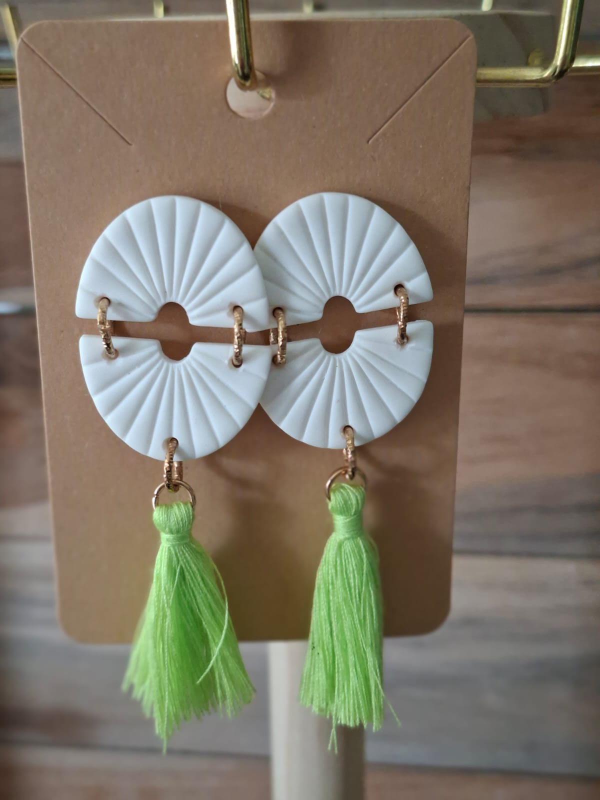 La boucle est une création artisanale alliant acier inoxydable, résine et pâte polymère.