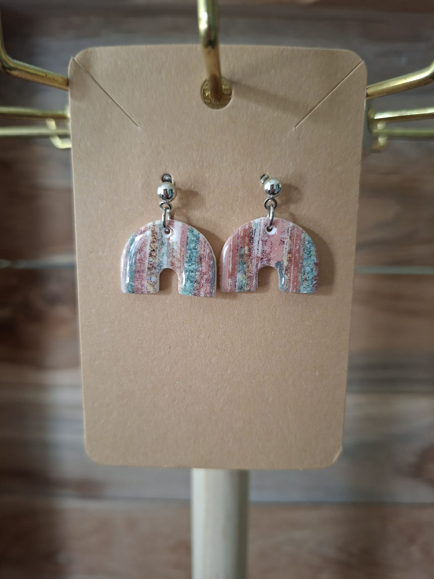 La boucle est une création artisanale alliant acier inoxydable, résine et pâte polymère.