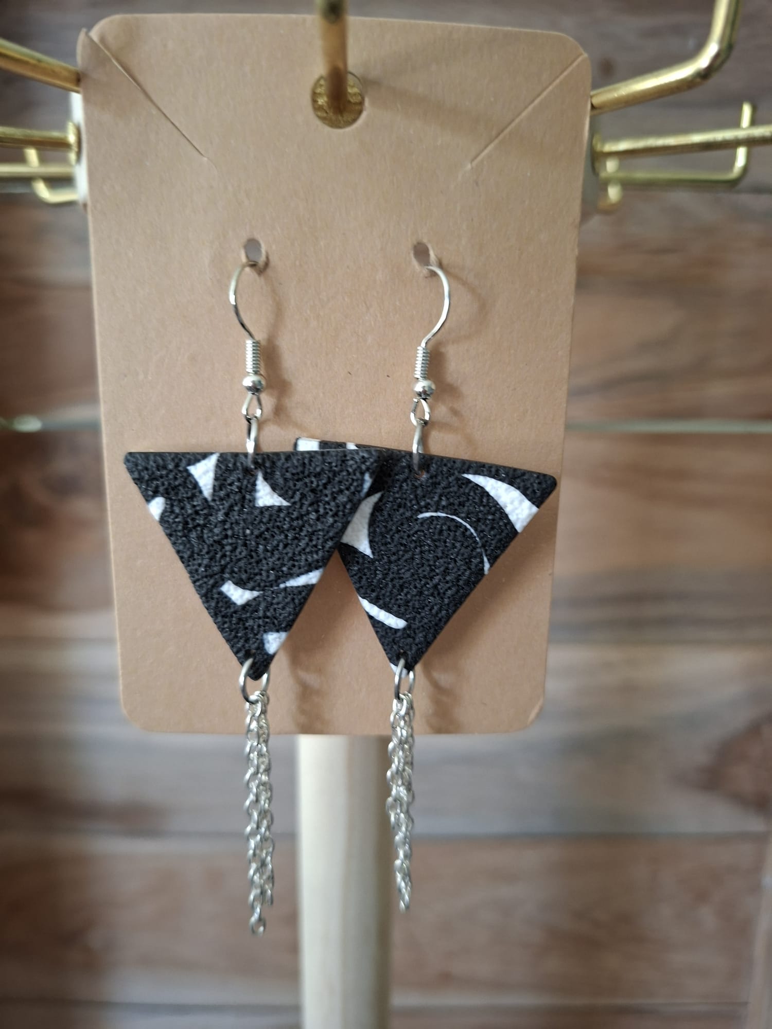 La boucle est une création artisanale alliant acier inoxydable, résine et pâte polymère.