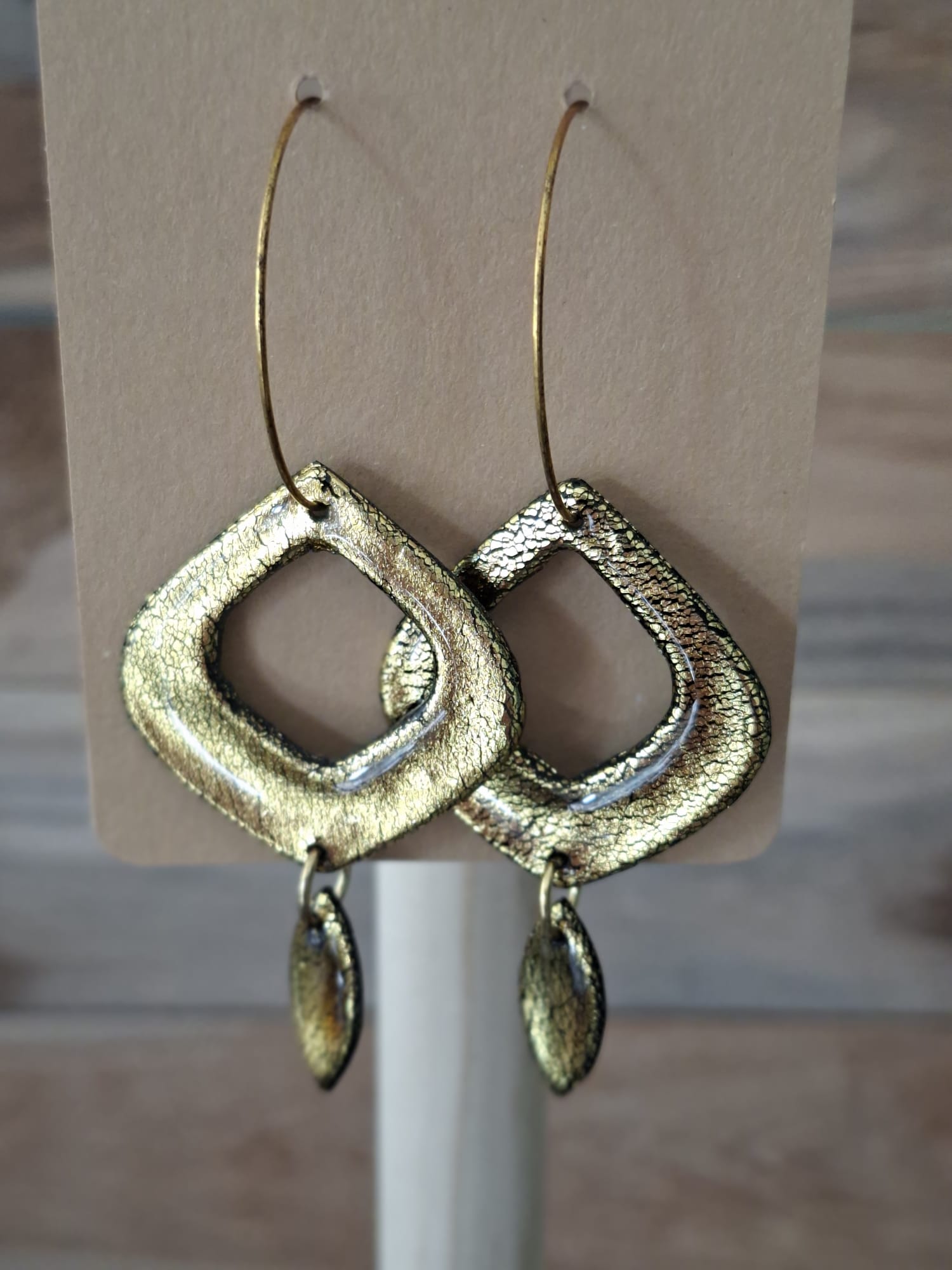 La boucle est une création artisanale alliant acier inoxydable, résine et pâte polymère.