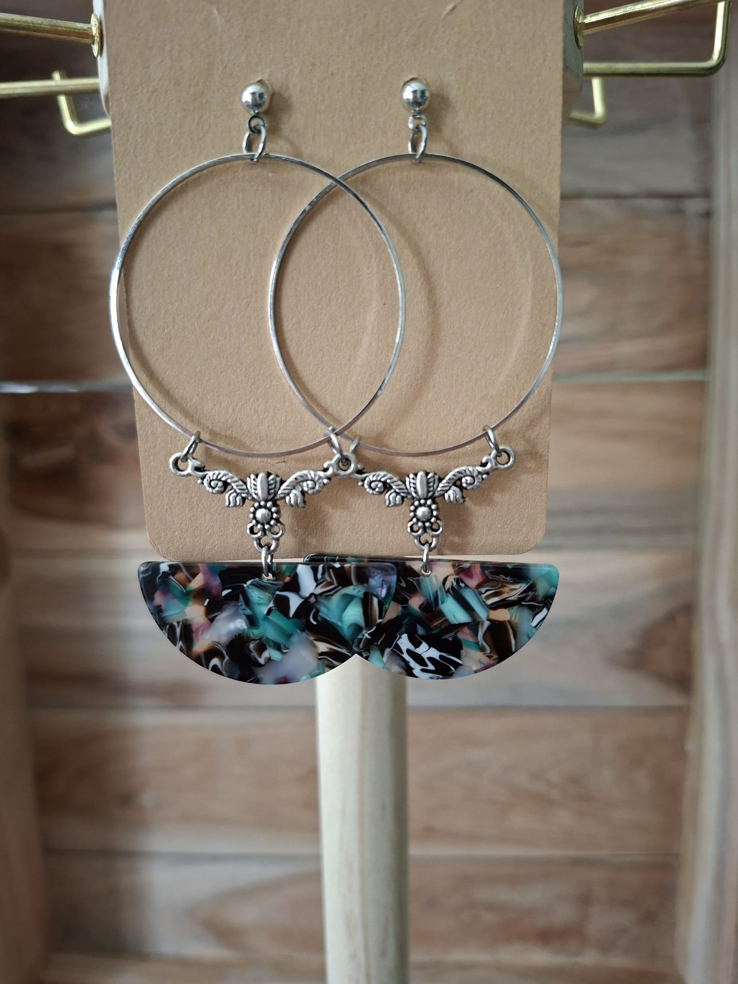 La boucle est une création artisanale alliant acier inoxydable, résine et pâte polymère.
