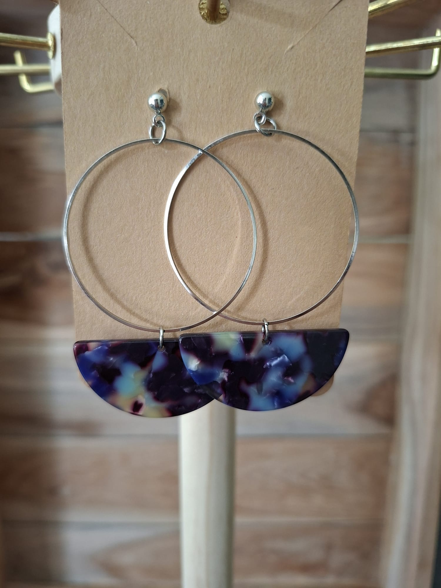 La boucle est une création artisanale alliant acier inoxydable, résine et pâte polymère.