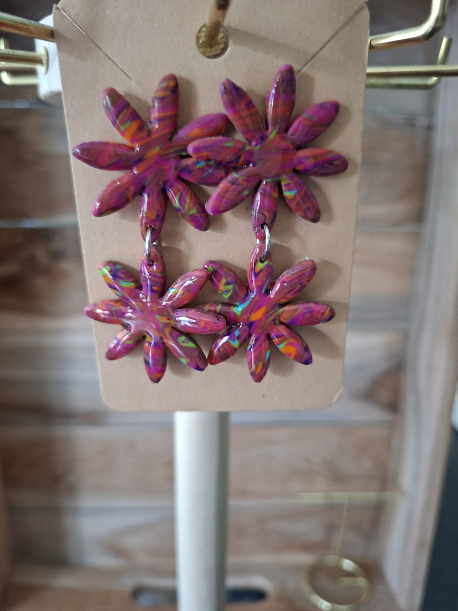 La boucle est une création artisanale alliant acier inoxydable, résine et pâte polymère.