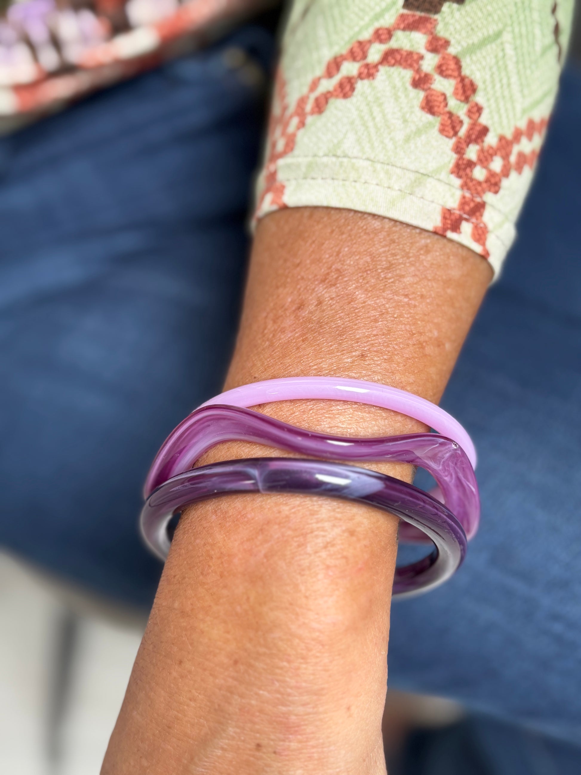 Cet ensemble de trois bracelets en résine rigide combine robustesse et style moderne.
