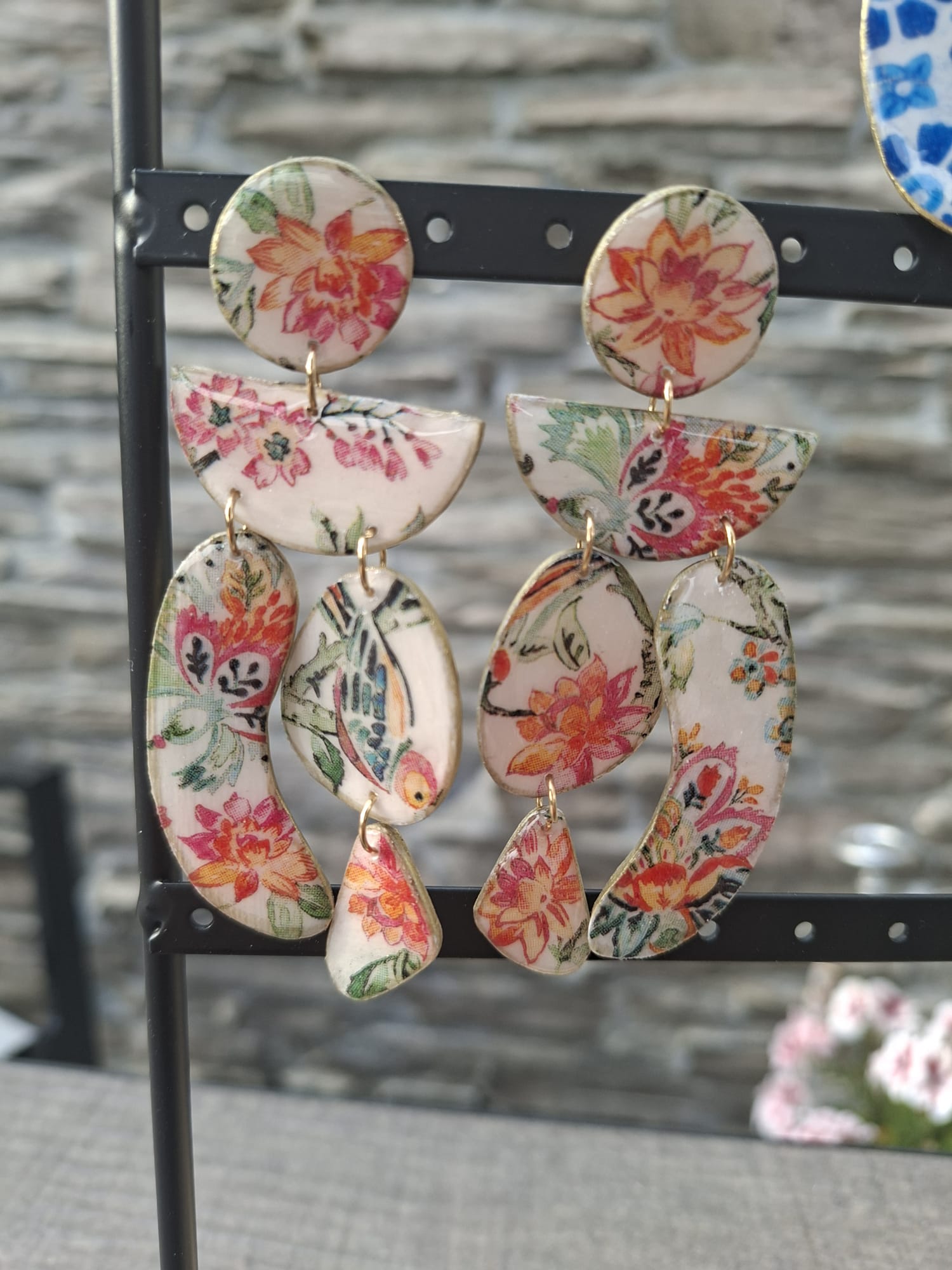 La boucle est une création artisanale alliant acier inoxydable, résine et pâte polymère.