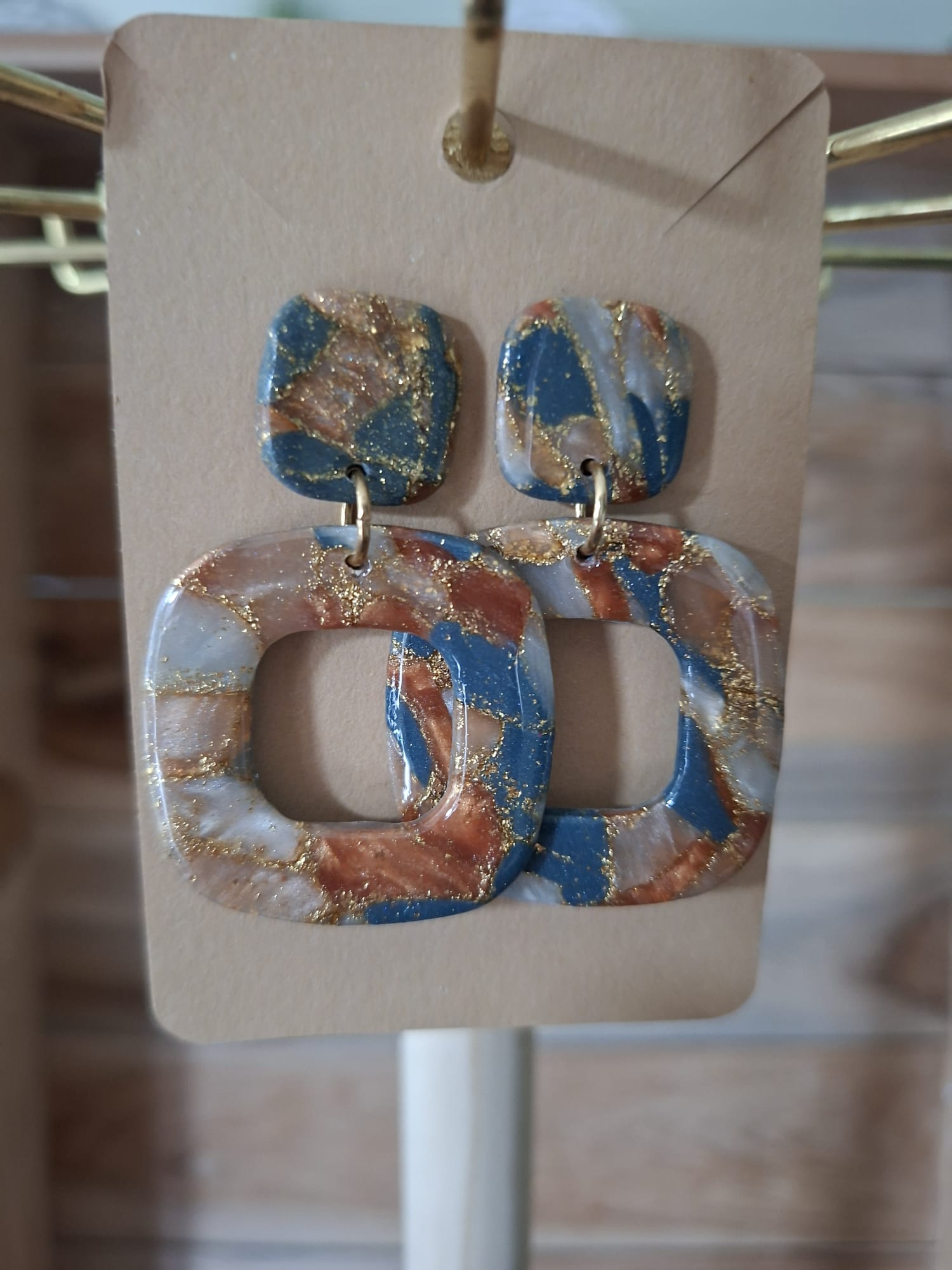La boucle est une création artisanale alliant acier inoxydable, résine et pâte polymère.